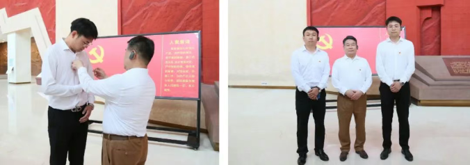 活动开始,首先,集团党委书记吴振山为今年新入党的两名发展对象佩戴了党徽,并勉励他们时刻牢记自己的初心使命,在工作中发挥模范带头作用。